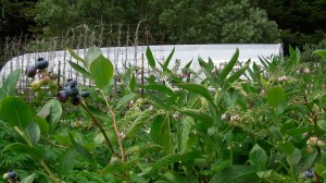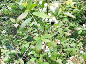Last year we tried a different strategy. We let the comfrey that we had been treating as weeds, grow up next to the bushes. We didn’t have any bird problems. So this year we’re doing the same thing. The comfrey provides blossoms to attract the bees which pollinate both the blueberries and the comfrey and we are assured of having berries without birds.