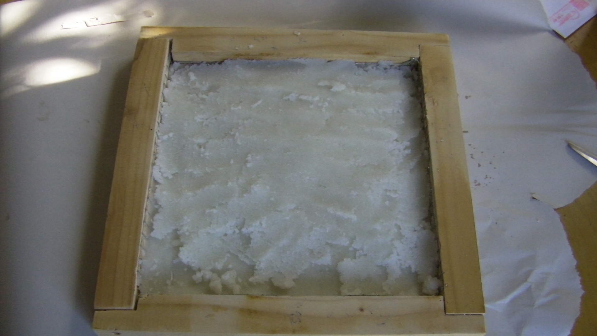 This shows the sugar resting on the 1/2″ hardware cloth. After this photo was taken, I dumped out the sugar and inserted a layer of blank newsprint between the sugar and the wire. That should hold up the sugar so it won’t drop down into the hive…I hope.