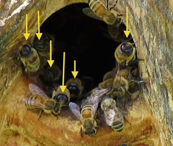 Bee Beard…August 1, 2013. The bees always fly around at the entrance between 1:30 and 3:30. I’m not sure why, the outside temperature is only 68 F (15C)