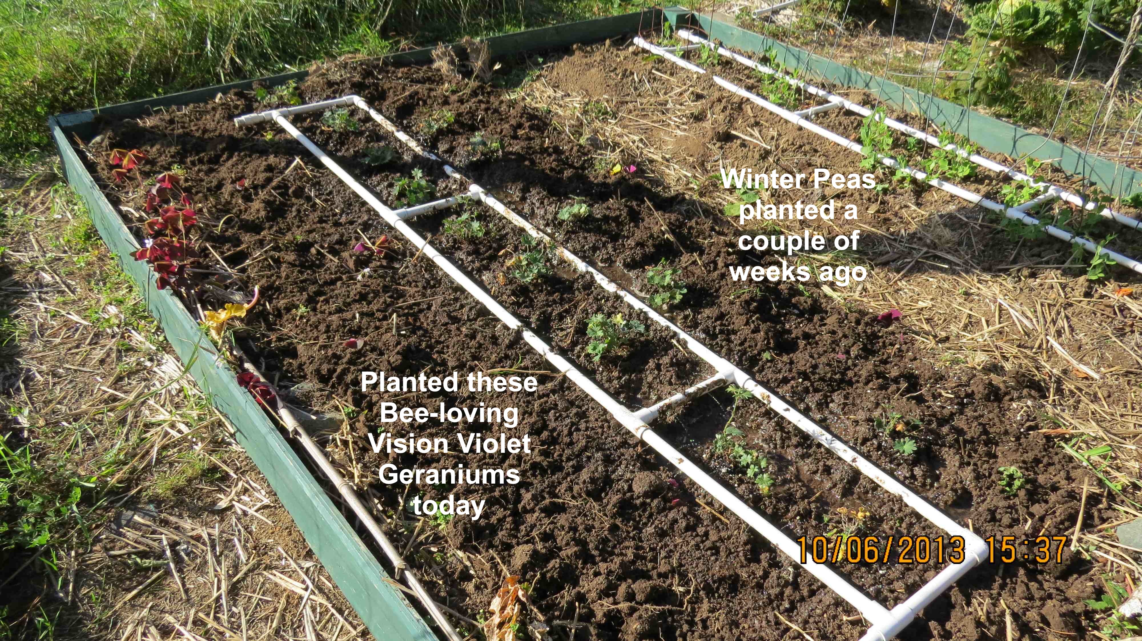 These bee-loving Vision Violet geraniums will bloom from early spring to late summer. Thanks to Bob and Carol Fischer for providing the starts for us.