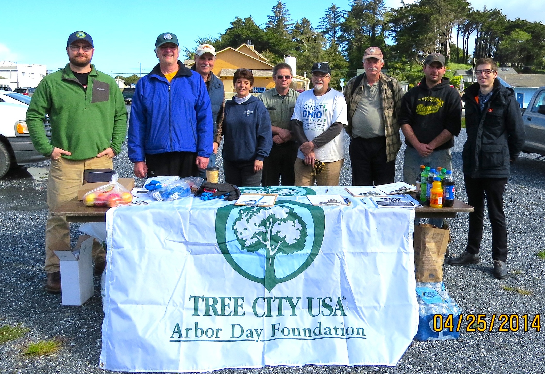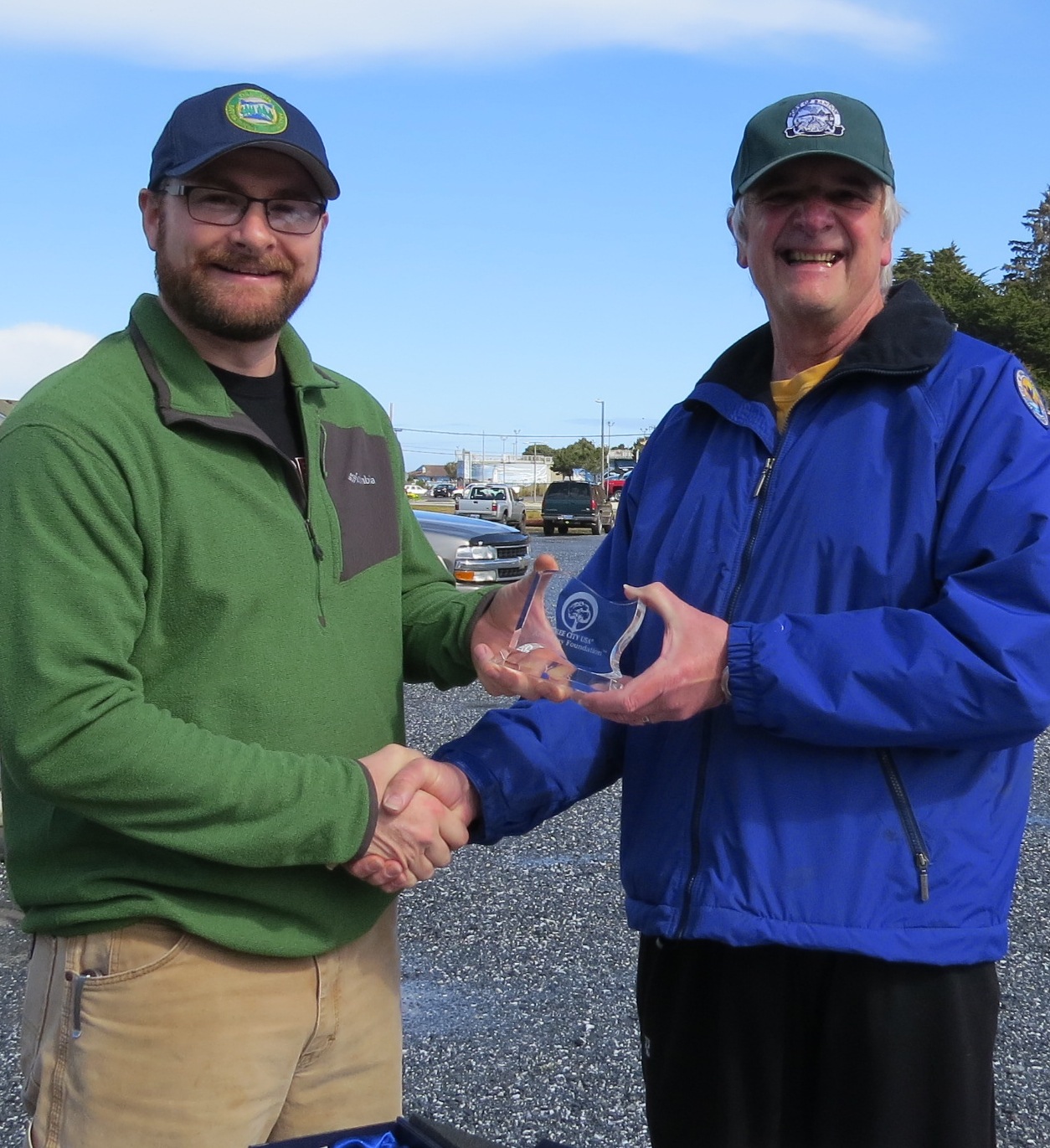 April 25, 2014…Nick Morris, Stewardship Forester with Oregon Department of Forestry, presents the Five Year Service Award for participation in the Tree City USA Program to the City of Bandon.
