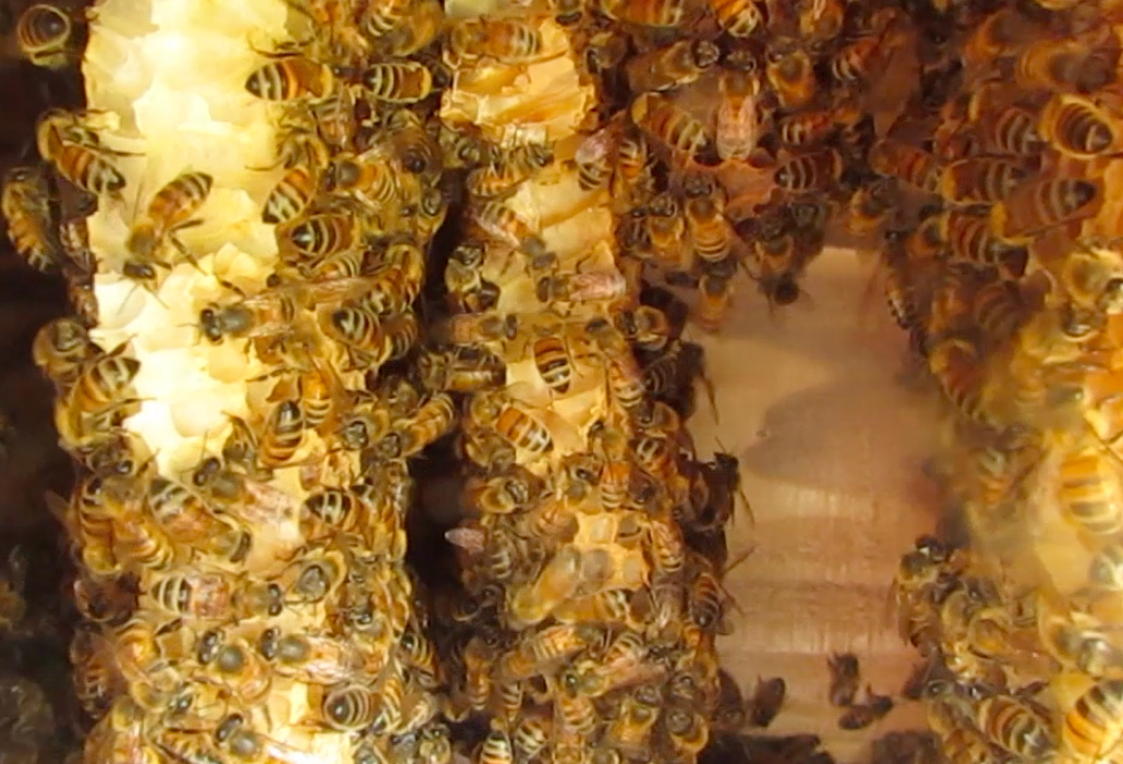 April 25, 2014… is declared Arbor Day in Bandon, Oregon. These volunteers are donating their time to remove ivy from the alder and ash trees. Organizer Michelle Hampton (left center) knows that honeybees and other pollinators get nourishment from ivy, but it’s choking the trees and must be removed. Since my bees might be affected she has revealed to me a place where I might find an old colony of bees to capture a swarm from. More on that later.