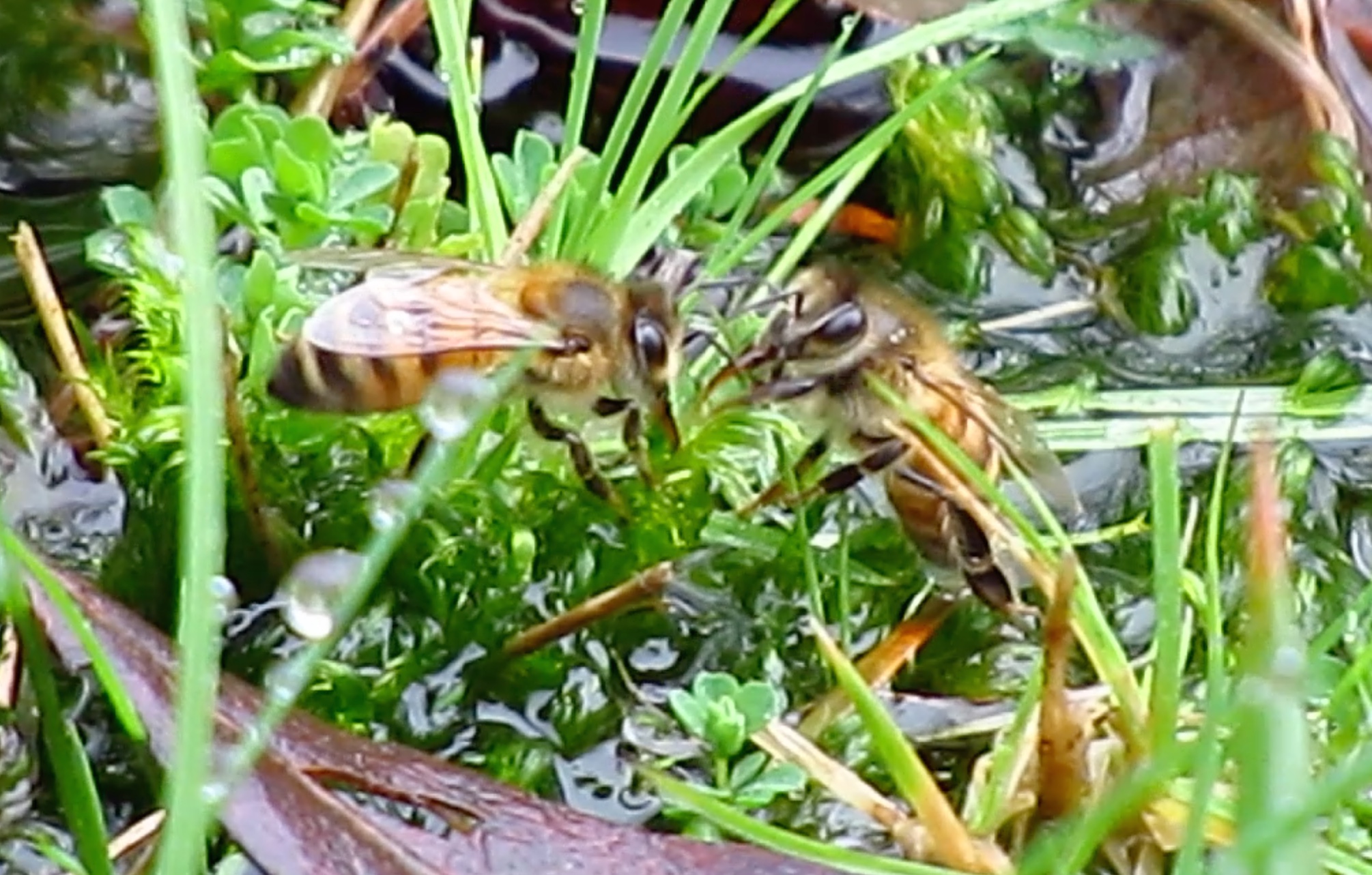 Great video. Damp moss is a safe way for bees to collect water. No danger of falling in. Are you seeing them preferentially use this patch over any nearby puddles?