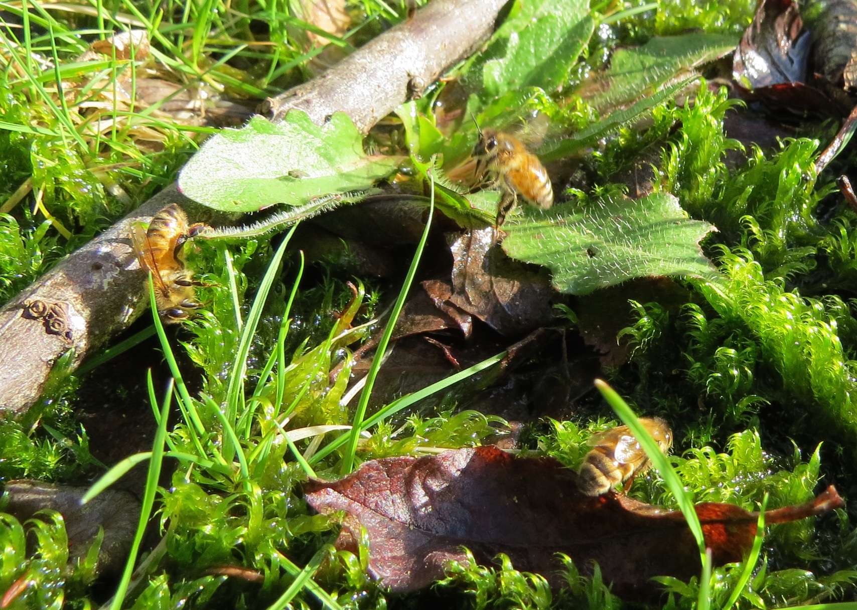 January 22…I’ve heard bees like “dirty” water, so I guess this mossy water is no surprise, but I wonder what they’re getting out of it.