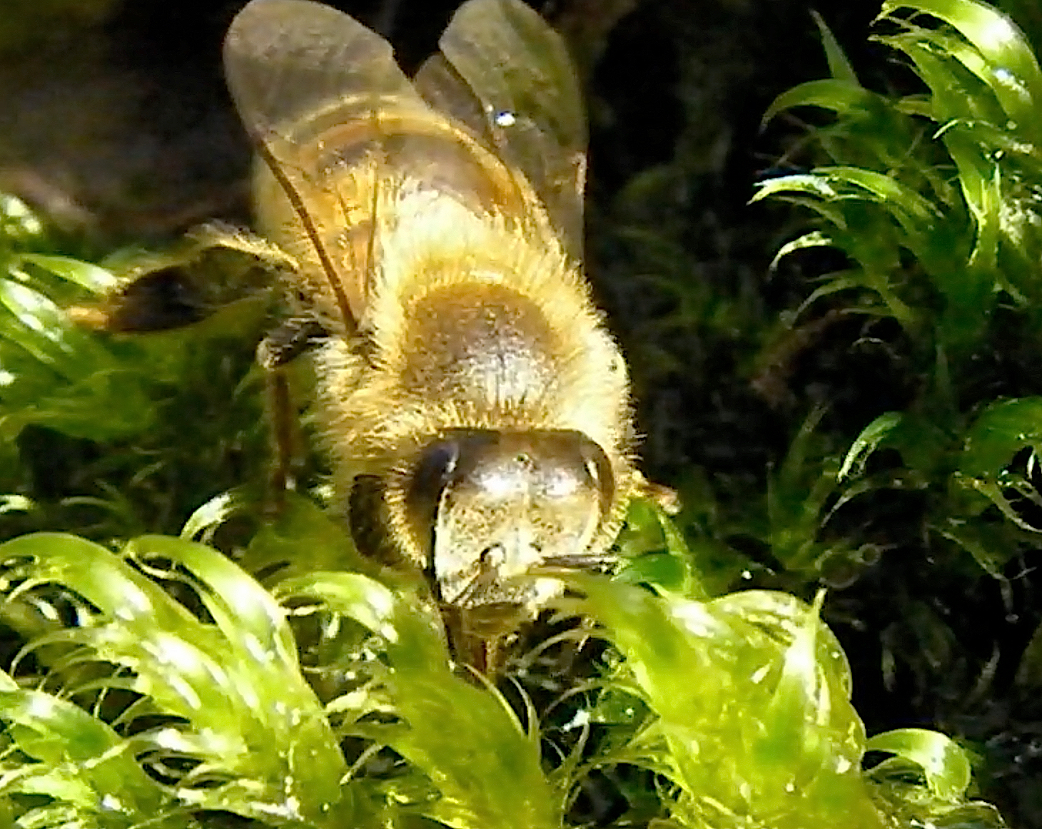 Some more video of honeybees active in the moss while it’s raining…