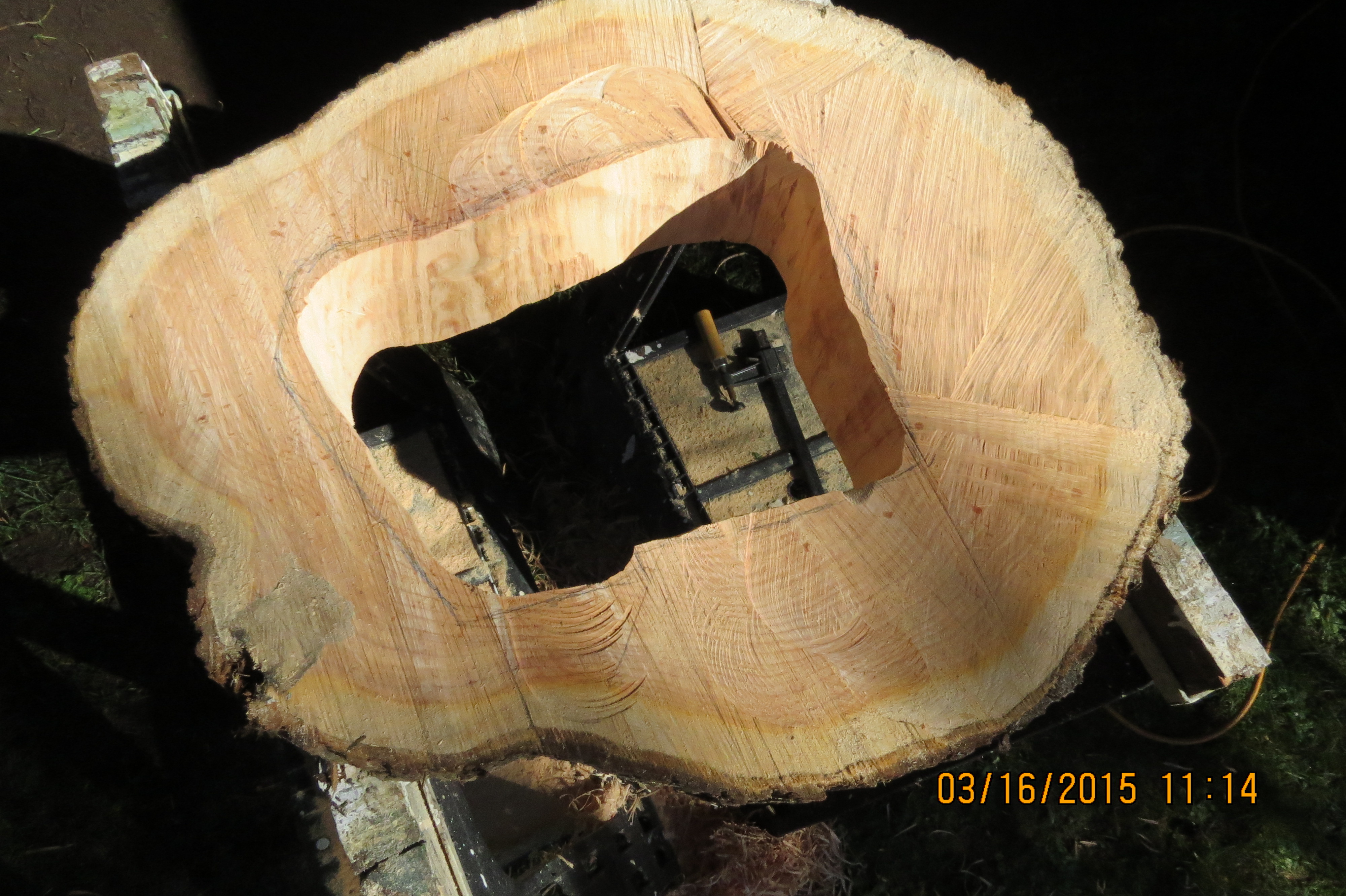 When I proposed using an old bird feeding station on the log hive, Brian Vorwaller went quiet. I don’t think he really wanted to see that old thing on top of his beautiful creation, so he asked me for another chunk of wood.