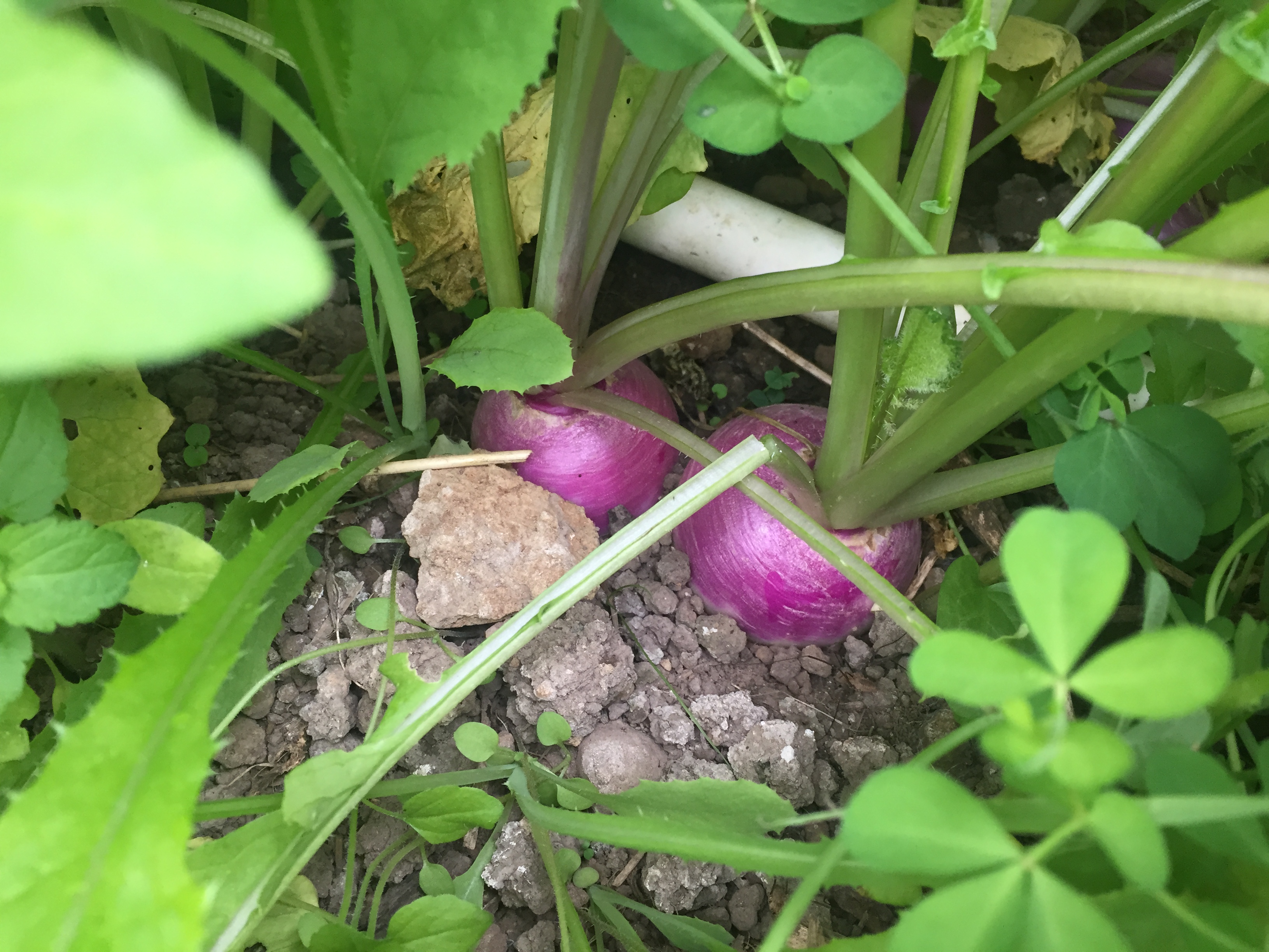 Oct. 6…Those turnips might be crowding out the lettuce, but we’re happy everything is growing so well.