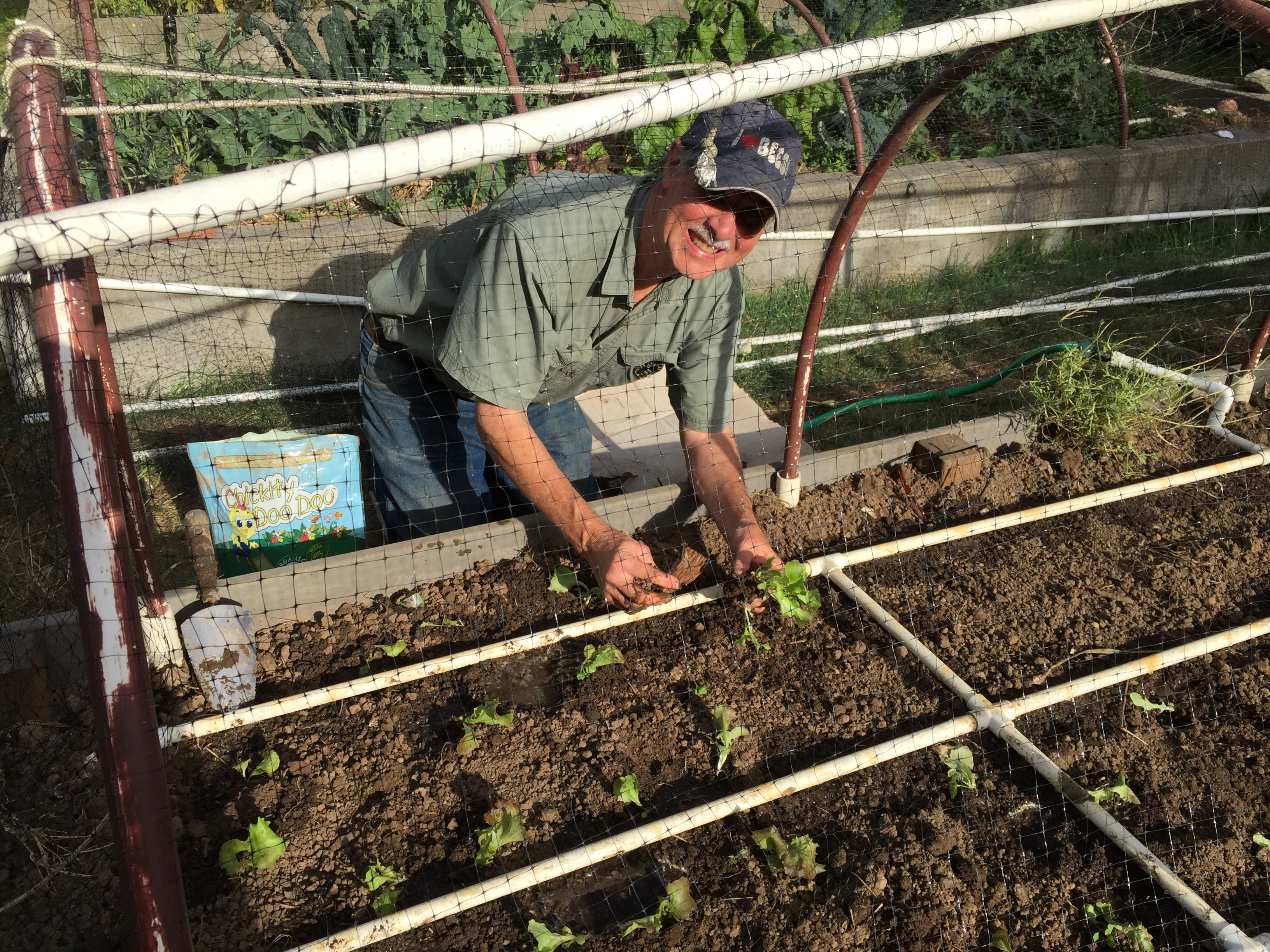Aug. 20… Beets on left, turnips in middle, Sue plants winter lettuce on right. (Yes Pat, you did remember to put ashes under the beets.)