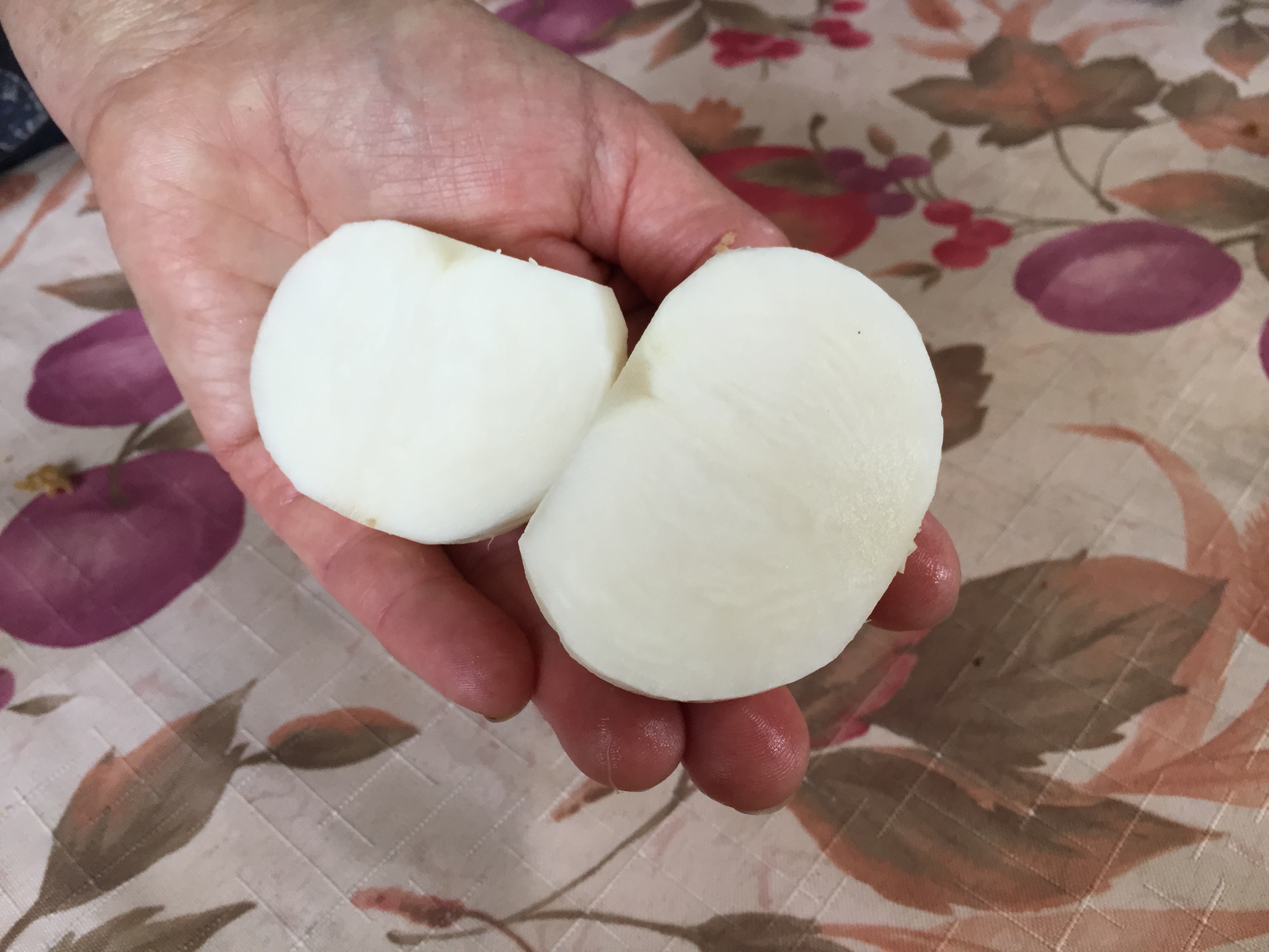 Last year we tried growing turnips for the bees again, but for some unknown reason, most of them didn’t germinate…only a few in the middle row. We were looking for a place to bury crab shell and dug it in on both sides of the few turnips. They must have liked it because they grew HUGE. Since there were so few and since my wife makes a delicious turnip soup, those turnips never got to go to seed.
