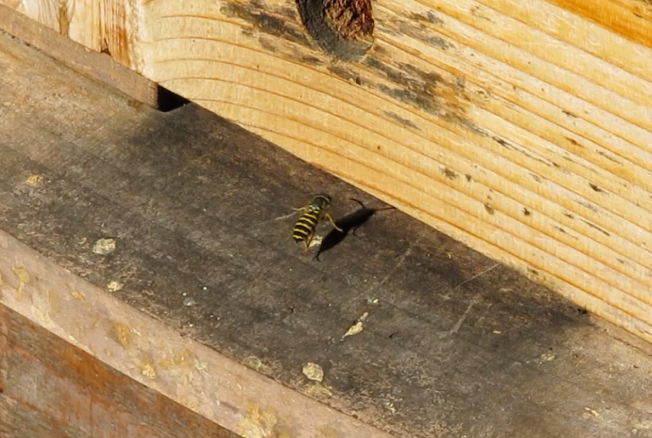 I shot some video on the Warre hive just to make sure what was going into the hive were wasps. Yes, there were some robber bees, but mostly wasps.