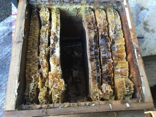 The two combs in the middle section were mostly empty as can be seen in the photo to the right.