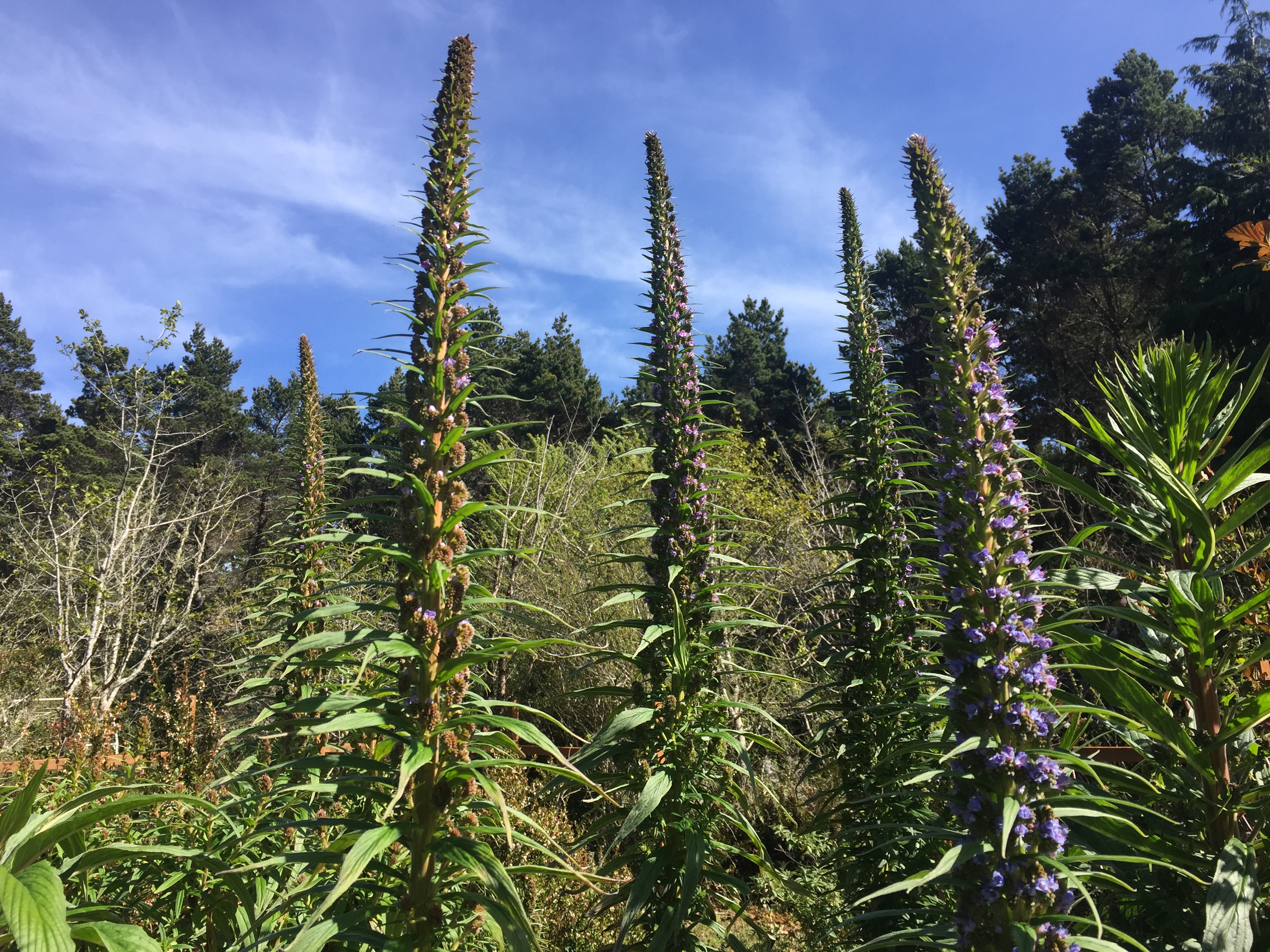 This is the same echium as above. The blossoms are a pretty blue color and we spotted bees on it today.