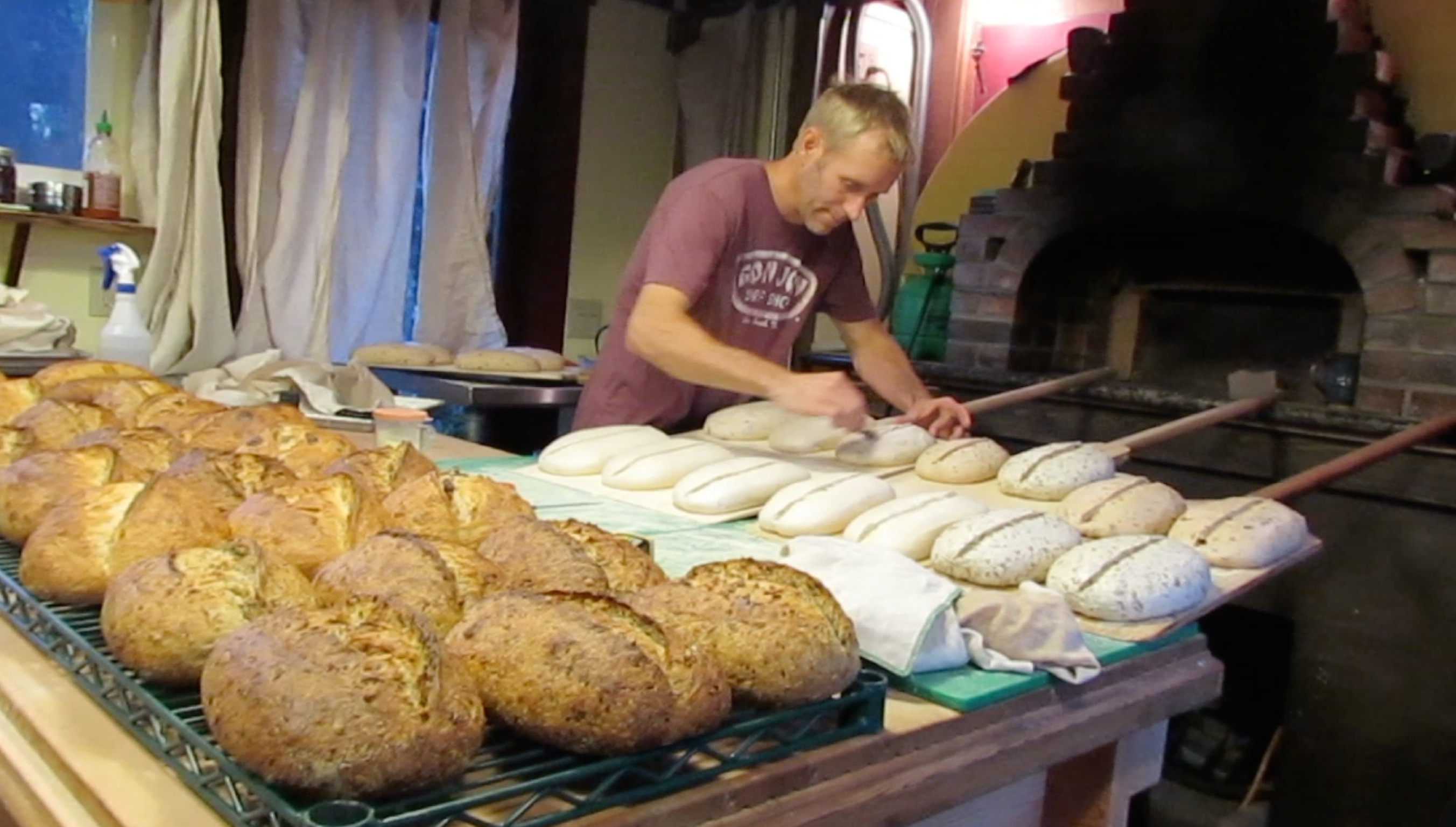 It took about six months for Seth to build his Alan Scott wood-fired bread oven and the shop that serves as his kitchen.