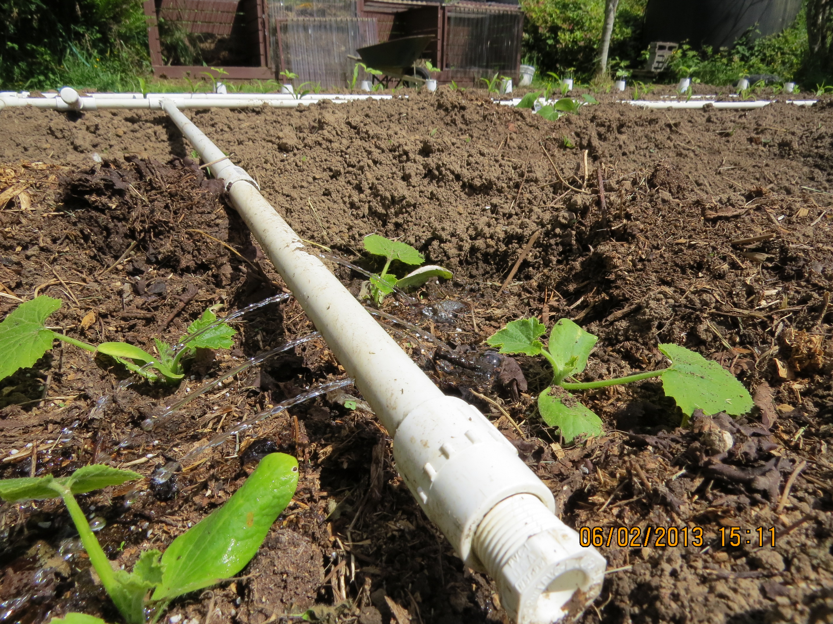 An example of drip water PVC that didn't work.  I tried this on the Hugelkulture bed.  I'll have to work on this a little more.