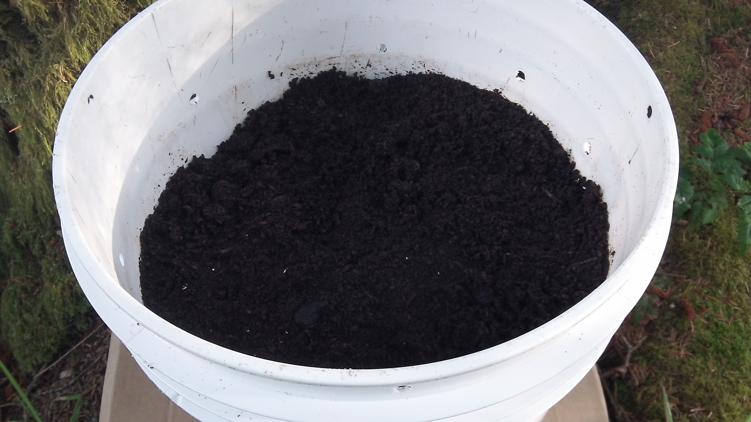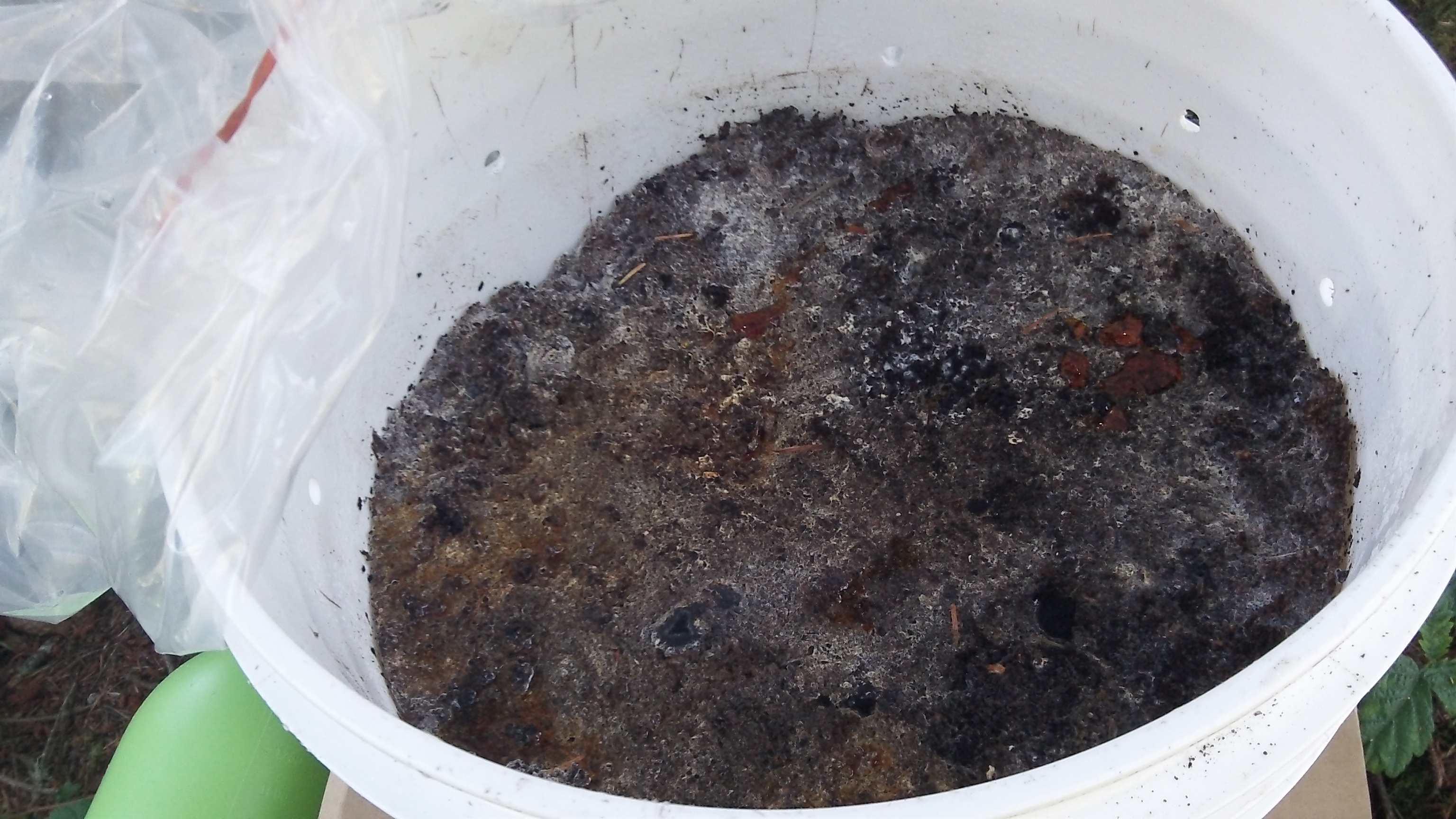 I placed the bucket outside under some fir trees. It’s mostly in the shade with a couple of slices of sun early and late.