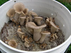 I decided to try out growing some mushrooms after my daughter sent me a mushroom growing kit from the SF Bay area.  They were oyster mushrooms and worked well, so I wanted more.  I trade printing services for the opportunity to pick up coffee grounds from a place in town.  I only needed about a five gallon bucket load.