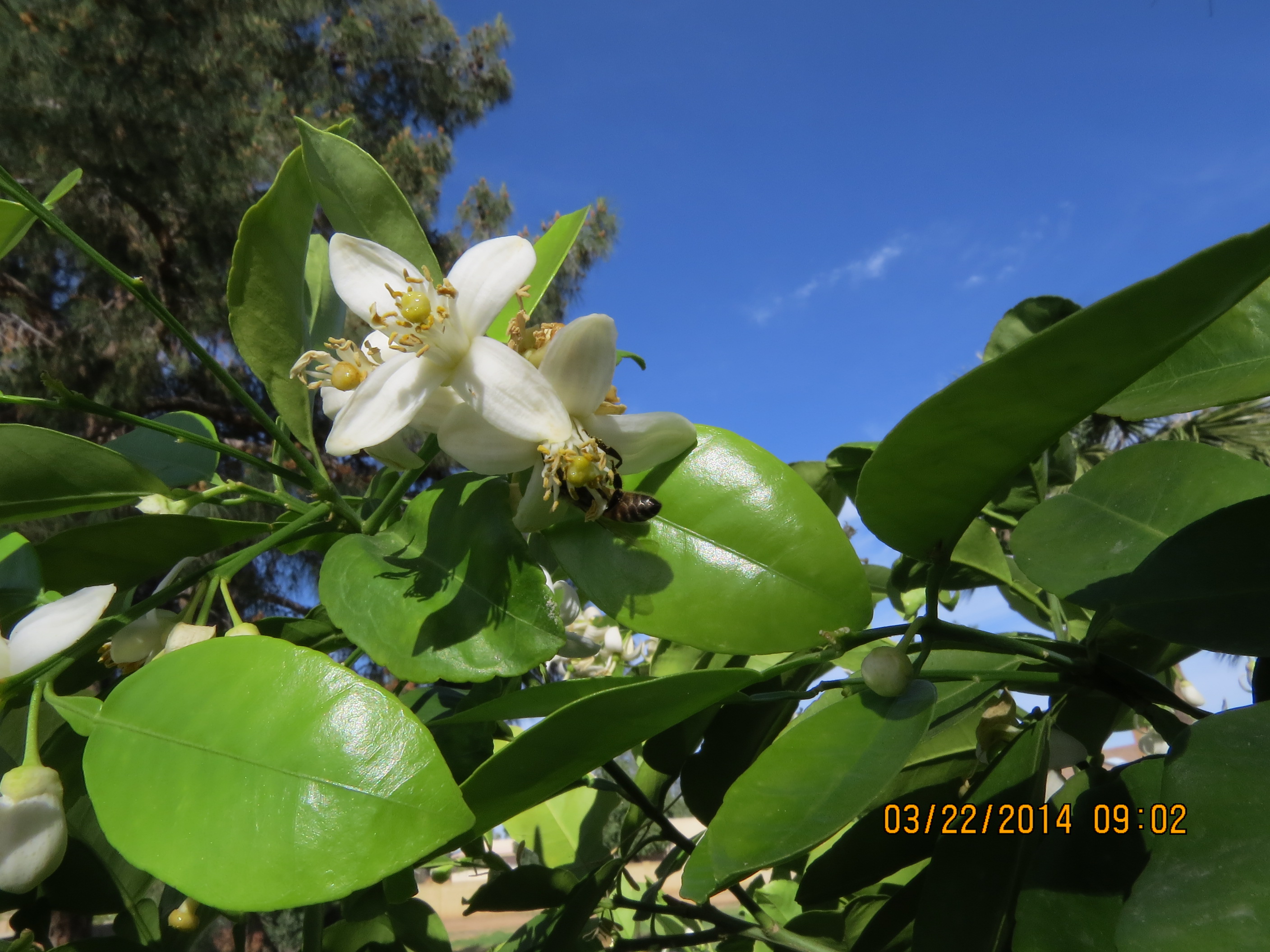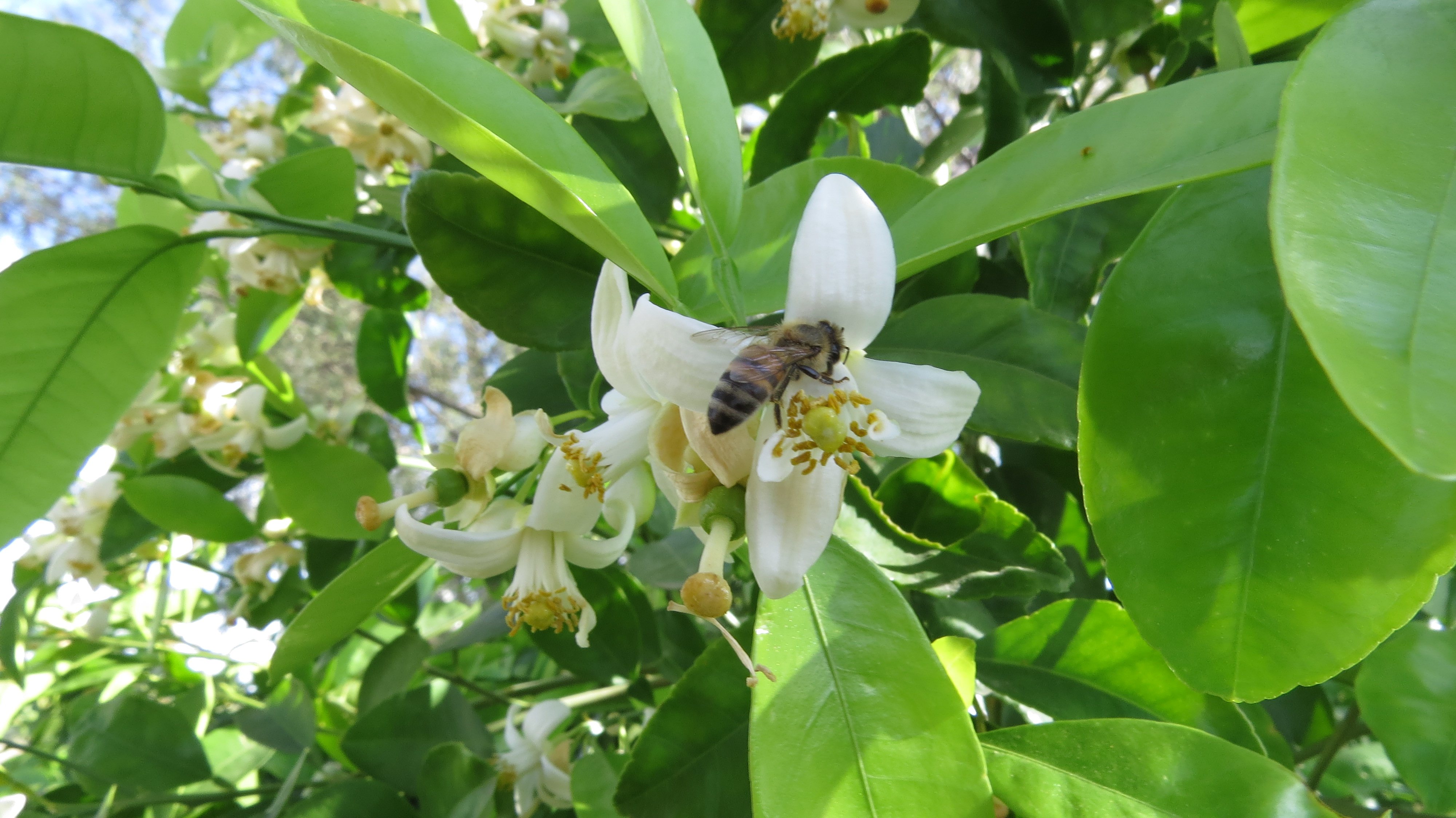 It’s almost time to get packed up and head back to Oregon when my son-in-law mentions he saw bees on the grapefruit trees at the house where we’re staying.