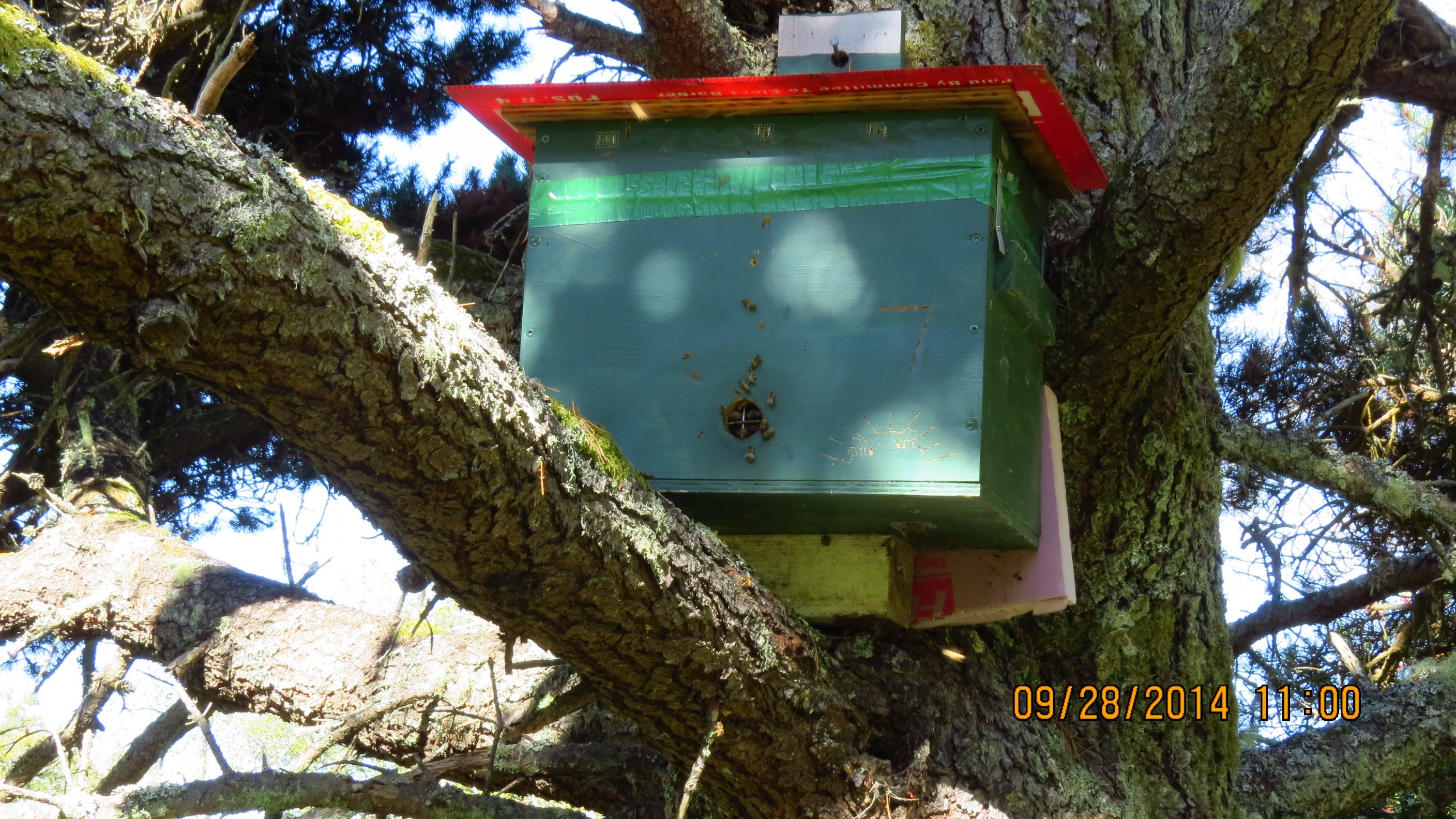 Dec. 25, 2015…I had pulled off the empty top box and pinned some protection from rainwater getting in. It was too late.