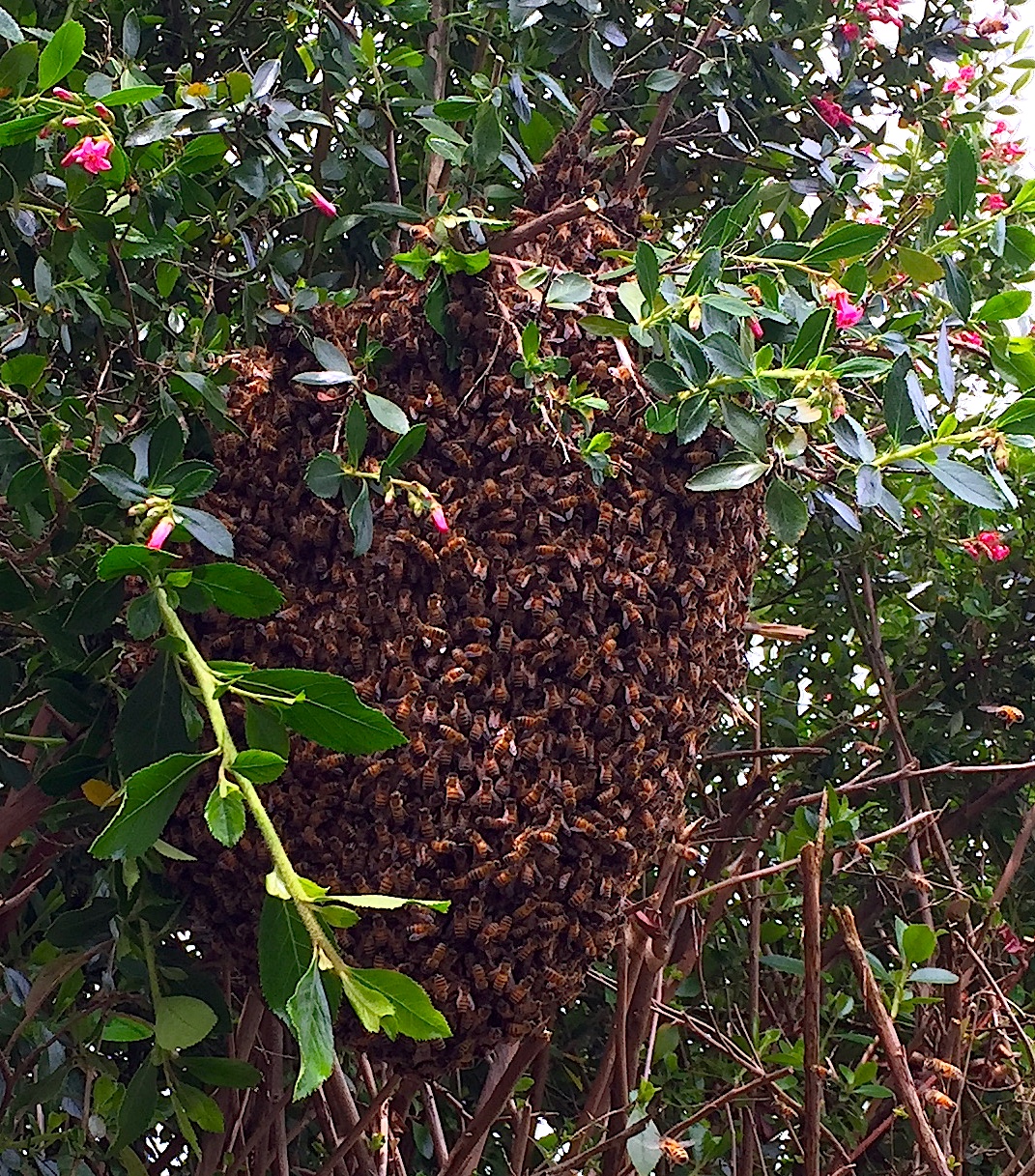 Another thing that’s been bothering me for awhile is the questionable source of swarms I get from time to time. Where are they coming from? I’m beginning to realize they might be coming from the commercial hives in the cranberry bogs. The commercial hives, I just learned from a cranberry grower, come straight up from the almond orchards in California.