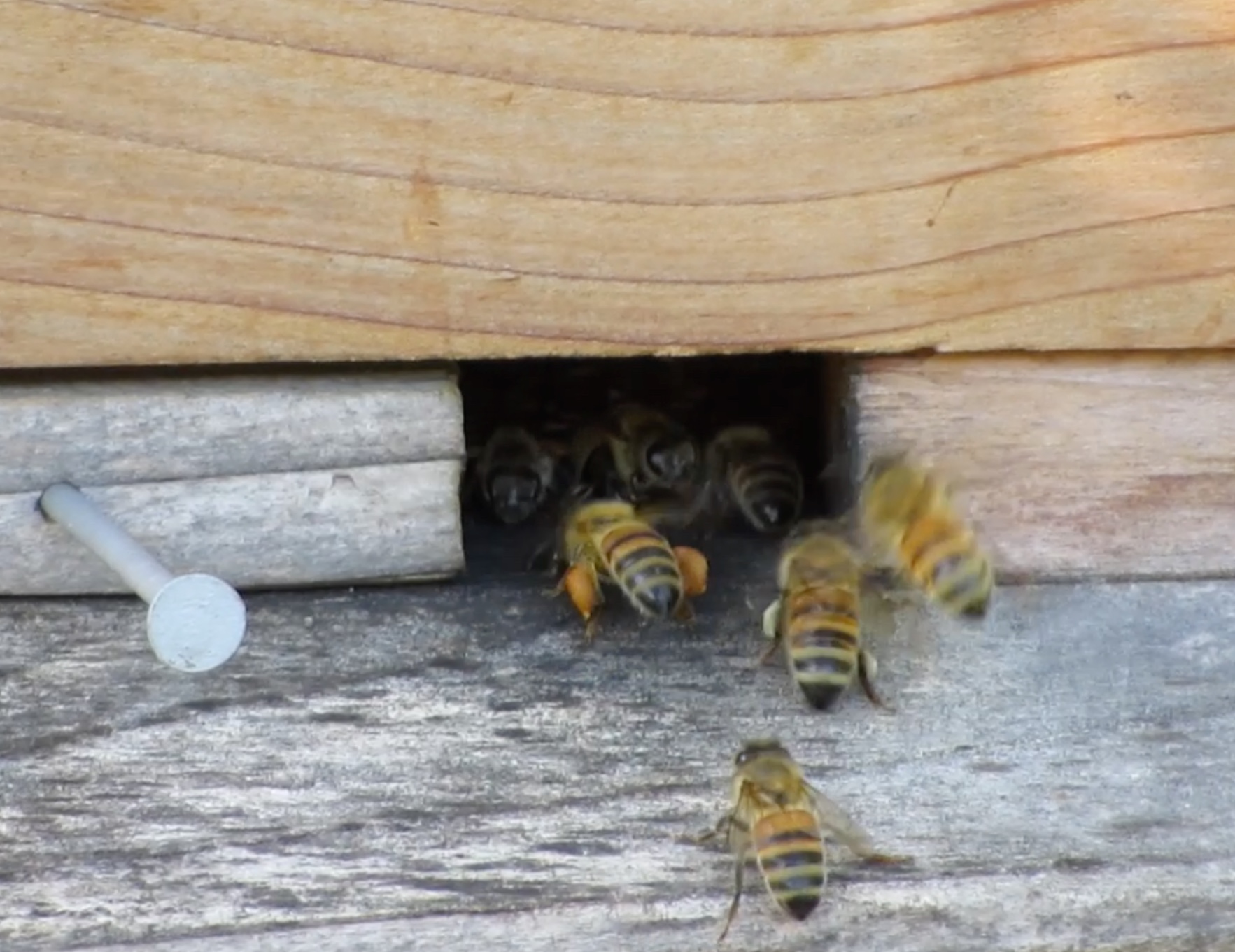 - Dec. 20, 2015…I assumed that bees entering with pollen indicated a laying queen. Yes, there were some dead bees on the screen, but there were also bees removing them from the hive.