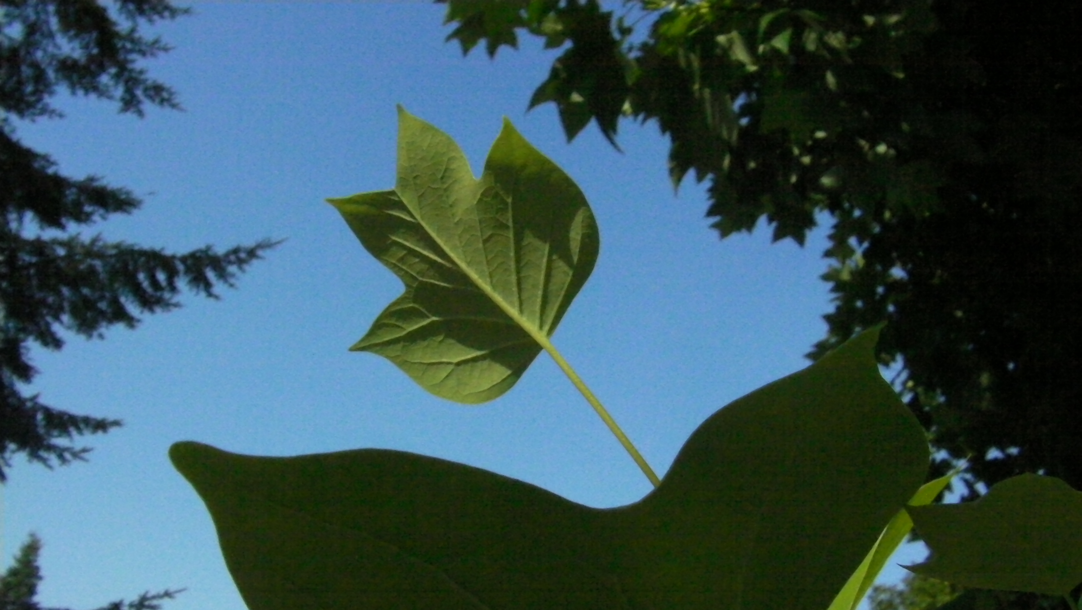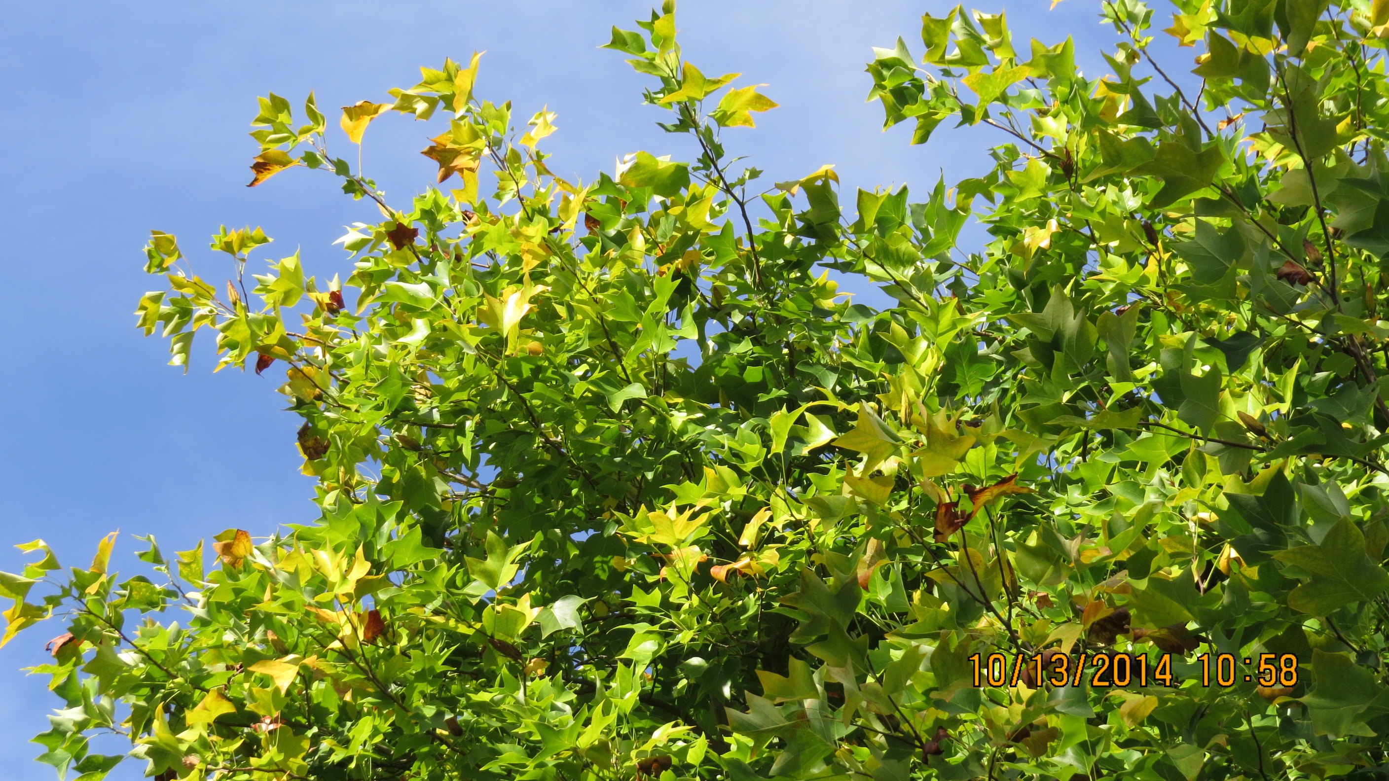 Looking up into the umbrella, even these leaves are yellowing. A member of the Magnoliaceae family, these trees are native in the US, east of the Mississippi. The record height is 200 feet (61 meters), but many grow to over 100 feet.