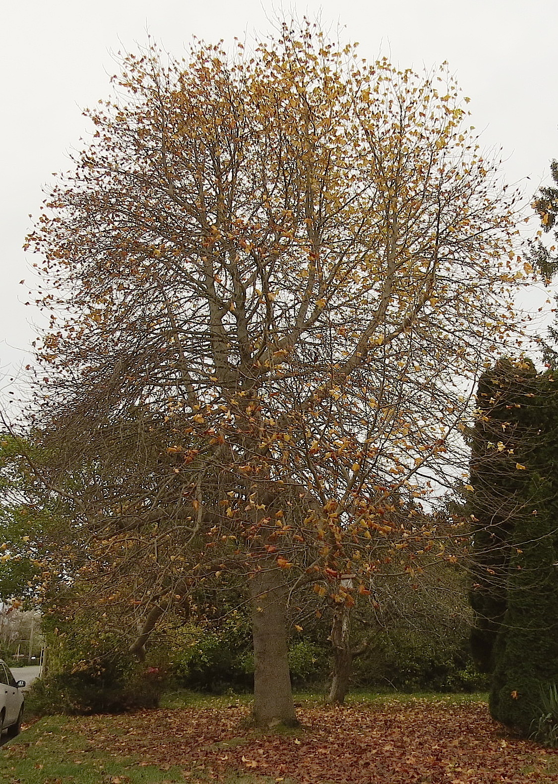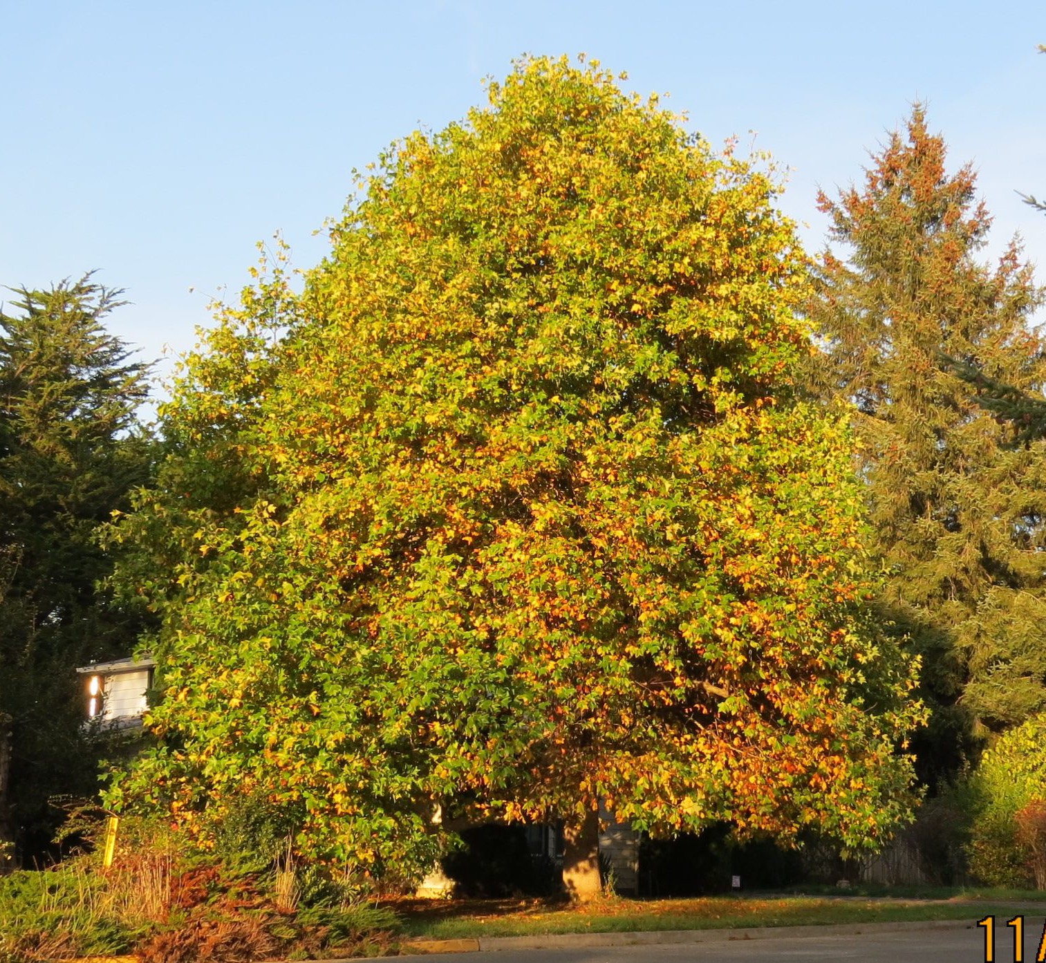 Yep, the leaves are definitely changing color. According to Portland (OR) Parks and Recreation, fall foliage color is gold-yellow. Featured is a tulip tree that was planted in the 1890s.