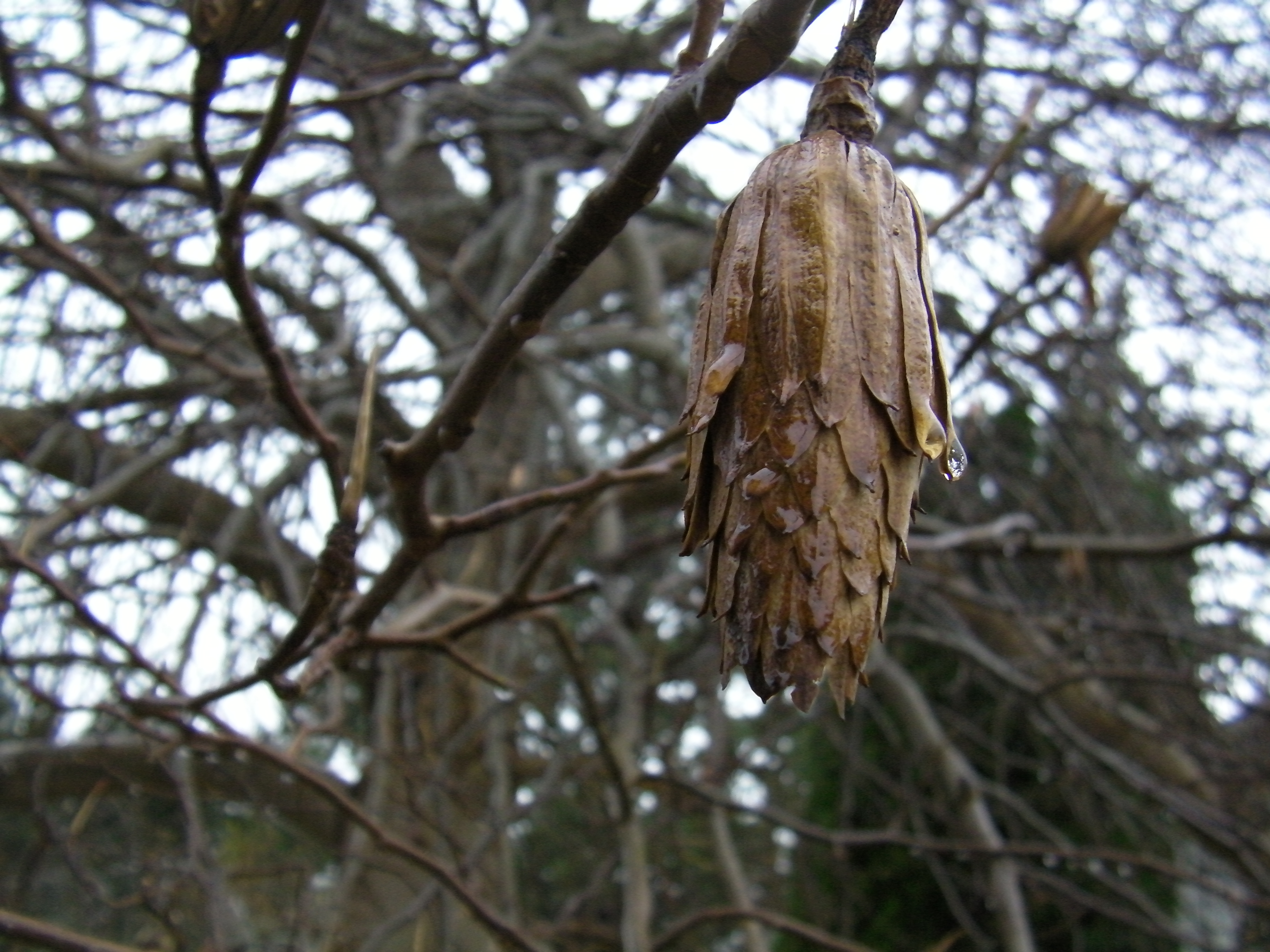 The seed pod is just starting to show a little browning on the tips. I never noticed the seed pods before because they are hidden in the foliage, but because of this “tree following” project, I’m pushing leaves out of the way to find them. Luckily, the pods are within reach.